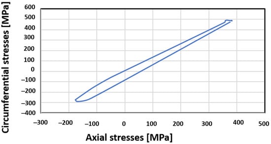 Figure 18. Tangential stress vs. axial stress [MPa].