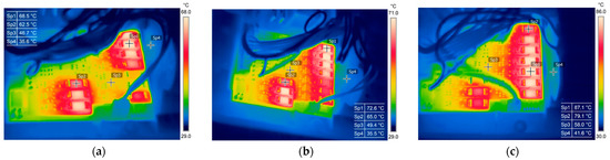 BMS thermal load during charging process at: (a) 1:45 PM; (b) 1:58 PM; (c) 2:05 PM.