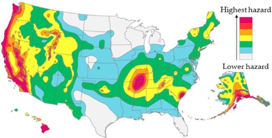 - U.S. Geological Survey (USGS). Earthquake Hazard Maps. Available online: https://doi.org/10.5066/F7HT2MHG (accessed on 17 November 2021).