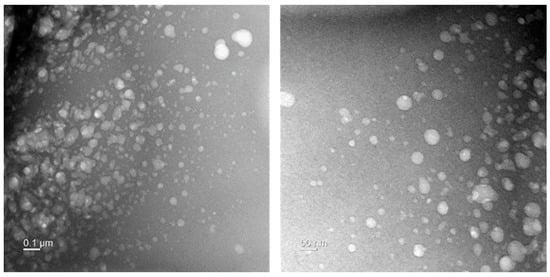 Furthermore, the size and morphology of the ultrasonicated garlic extract particles were characterized by utilizing transmission electron microscopy (TEM), where all four prepared samples were diluted from 1/100, 1/1000 to 1/1000 dilution factors, 2 µL of each sample were placed on the carbon-coated copper grid for overnight incubation, and then all prepared copper grids were analyzed using TEM.