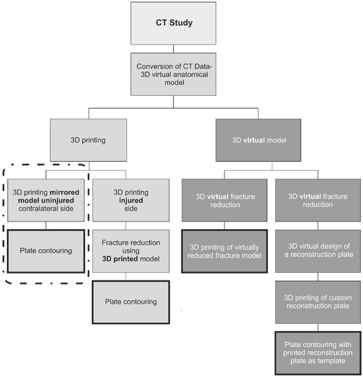 To greatly simplify and shorten the entire process of going from CT scan to 3D model and finally preparing surgical plates, it was necessary to develop a straightforward and rapid methodology. Such an approach would allow a hospital-based multidisciplinary team to scan, convert and print 3D models using free, open-source software and an inex-pensive 3D printing technology.