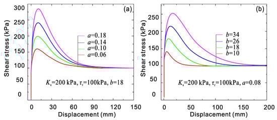 - The physical meaning of the parameters in the constitutive model based on Gamma distribution is clear. Parameter a mainly determines peak strength and is a parameter reflecting strength; Parameter b determines the displacement of the peak strength and residual strength.