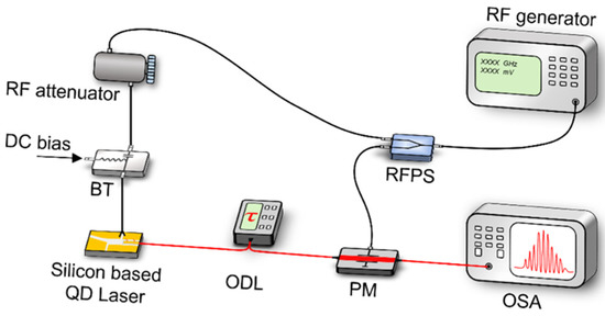 Schematics of the experimental set-up of optical phase modulation method. RFPS, radio-frequency power divider; BT, bias tee; ODL, optical delay line; PM, phase modulator; OSA, optical spectrum analyzer.