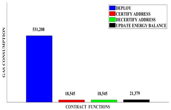 As can be observed from Table 1, there is a slightly higher value in deploying K-mean smart contract, and a much bigger gas consumption in calling K-mean Smart Contract main function compared to calling purchase function [65]. Calling K-mean Smart Contract is 160 times costlier. However, K-mean clustering is only called once in each trading round, which makes its gas cost reasonable and its implementation feasible and practical, due to its low invoking frequency.