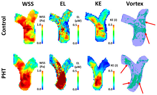 - Barker, A.J.; Roldán-Alzate, A.; Entezari, P.; Shah, S.J.; Chesler, N.C.; Wieben, O.; Markl, M.; Francois, C.J. Four-dimensional flow assessment of pulmonary artery flow and wall shear stress in adult pulmonary arterial hypertension: Results from two institutions. Magn. Reson. Med. 2015, 73, 1904–1913. [Google Scholar] [CrossRef] [Green Version]