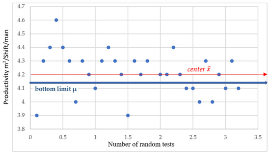 When calculating the mean value estimate, we assume standard distribution, not knowing standard deviation σ, i.e., the performance deviations of individual workers per work shift, in the case of construction processes where the performance of ≥30 workers can be recorded per one day, ensuring that the procedural condition pursuant to the Lin-deberg–Lévy and Moivre–Laplace Theorem was observed. Using the Kolmogorov–Smirnov test, the assumption of whether a population is subject to a standardized normal distribution will be verified. The following formula is used to find the appropriate interval prediction (where σ = s), (1–4):