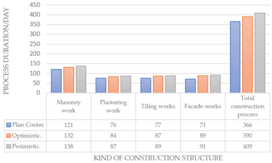 One of the main reasons for not complying with the planned construction cost is the fact that the time norm, i.e., the time needed to install a specific unit of a certain building structure, is not being met. Logically, this fact itself not only increases the wage expenses, which are necessary for installing a given specific unit of a building structure, but it also increases the expenses related to the corresponding prolongation of the overall construction time. That is why it is necessary, for more extensive construction units, to monitor the productivity of individual construction processes, including the time relations of consecutive processes among individual structures, ensuring that the planned construction cost is met. Several international publications have explored the topic of deviances between the planned and actual labor productivity values. This topic is usually explored using deterministic and stochastic network analysis methods which were previously developed during the first half of the 20th century. One of the first publications that explored a network analysis method, which represents the initial construction model based on the deterministic principle, was the introduction of the critical path method (CPM) method developed by Kelley, J. and Walker, M. in 1950 [1]. The method was applied for the first time in 1966 within the frame of the construction of the high-rise buildings of the World Trade Center in New York. Another development stage of the network analysis was represented by the development of the Baukasten netzplanung (BKN) method which introduced four types of relations that represent a condition for minimal time intervals among individual construction processes [2]. A similar topic was explored by research studies that introduced the STSG network analysis method (construction network diagram), also based on the deterministic principle. The STSG method based on the BKN method was designated for modeling construction preparation and implementation processes. Compared with the BKN method, the STSG method is amended by four additional relations, which means that it can more accurately model the course of the construction [3]. One of the creators of the CPM method, Kelley, J. essentially contributed to the development of the PERT method by presenting a definition of the term “critical path”. The PERT method was introduced by Hamilton, B. A., also around 1950 [4]. The CPM method is often combined with the program evaluation and review technique (PERT) method, which is already based on the stochastic principle of the management of construction processes [5].