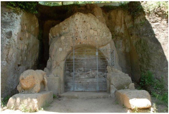 - Pallecchi, P. The Geomorphological context of Sovana Necropolis. In Polychrome Rock Architectures; Fabrizio Serra: Pisa, Italy, 2013; pp. 17–18. [Google Scholar]