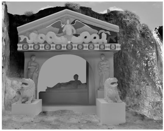 Finally, for the purpose of the restoration of Tomba dei Demoni Alati, a rendering of the original architecture, based on laser scanning of the remains that emerged from the excavation, allowed us to better evaluate the architectural and figurative significance of the tomb at the time of its edification (Figure 9).