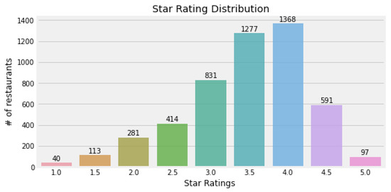 Figure 3 represents the star rating distribution among restaurants and their counts.