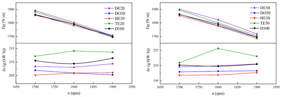 | Torque (N·m) | Start of Pre- Injection (°CA BTDC) | Duration of Pre- Injection (°CA) | Start of Main Injection (°CA BTDC) | Duration of Main Injection (Diesel) (°CA) |