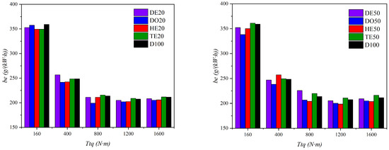 | Fuels | D100 | HE20 | HE50 | DO20 | DO50 | TE20 | TE50 | DE20 | DE50 |