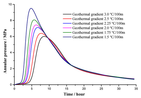 - The annular pressure shows a rapid increase and then decreases, which is similar to that of the temperature. As a result of the cement hydration process, the annular pressure increases with the geothermal gradient, the cement hydration heat, and the wellbore diameter. A sensitive analysis can provide safety guidance for the management of annular pressure.