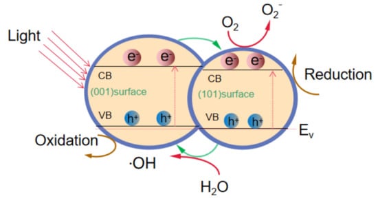 - Liu, G.; Yang, H.G.; Wang, X.; Cheng, L.; Lu, H.; Wang, L.; Cheng, H.M. Enhanced photoactivity of oxygen-deficient ana- tase TiO2 sheets with dominant (001) facets. J. Phys. Chem. B 2009, 113, 21784–21788. [Google Scholar]