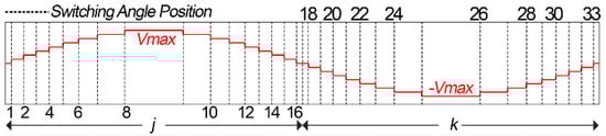 where NL is the number of MLI output levels, θj is the switching angle position up to NL−1, θk is the switching angle position from NL + 1 up to 2NL−1. The depiction of the expected 17 L output is displayed in Figure 6 using (17)–(20).