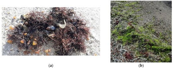 When the composition of beach-cast macroalgae on the coast of the Baltic Sea within the Kaliningrad region was assessed, it was discovered that the casts of macroalgae and sea grasses on the coast have a complex, multicomponent composition, as they can contain various animal and plant objects for which they are edificatory organisms in habitats, food, or shelter while drifting at sea after separation from the substrate, as well as after being cast (Figure 1). In addition, beach-cast algae can accumulate debris and pollutants, such as plastic, petroleum hydrocarbons, and heavy metals [54].