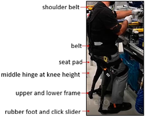 Lower body exoskeleton—Chairless Chair 2.0 (CC 2.0). Exoskeleton was used in Experiment 2 (EXO): minimizing the physical load by ergonomic sit-stand pattern.