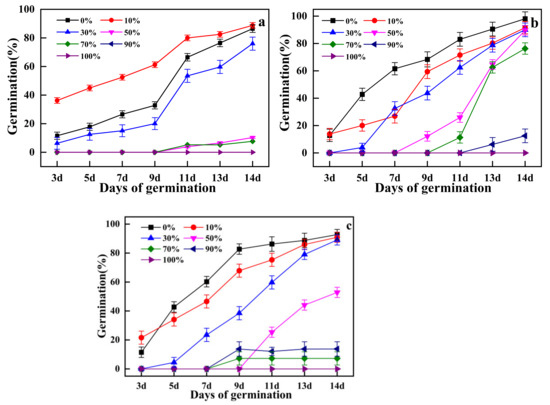 3.2.1. Effects of Heat Treatment Residues on the Germination Rates of Mung Beans
