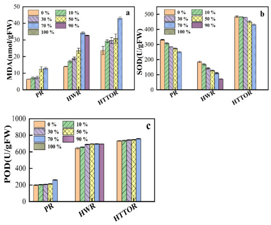 3.2.2. Analysis of MDA and Enzymatic Activity of Mung Beans after Heat Treatment Residue Cultivation