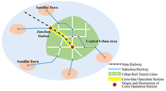 The large-scale, multi-center spatial layout of urban clusters and metropolitan areas requires multi-level, integrated rail transportation systems. In China, the rail transportation systems within metropolitan areas are generally divided into four levels: mainline, intercity, suburban railway, and urban rail transit. Mainline railway and intercity railway are operated by the state railway administration departments, connecting the main cities, serving passengers who travel long distances, and operating at higher speeds. The suburban railway is operated by the local city, connecting urban centers and surrounding satellite towns, serving the demand of intra-city travel. Generally speaking, the operation of state railway systems and suburban railway systems are independent of each other, so passengers have to transfer at the hub station, which results in a long transfer time. If the cross-line operation is realized, it will not only meet the passenger demand for direct access but also save passengers travel time. However, the cross-line operation is more complicated so it brings a great challenge to the operating organization. Nowadays, urban clusters and metropolitan areas are developing greatly in China, and cross-line operation between the state railway and suburban railway in these areas has become a research hotspot.
