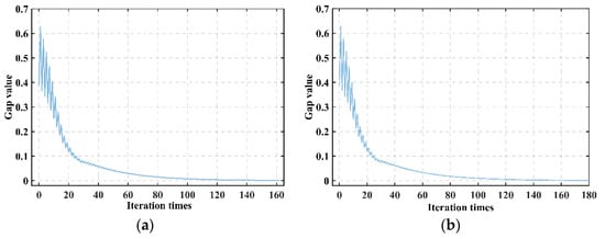 According to the path flow of the nth iteration, the new arc flow is updated by Equation (22). Then, update the impedance of all arcs and generalized cost of all paths based on the generalized travel cost function mentioned above.