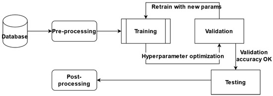 Components of the System: database (BraTS 2020), pre-processing, training, validation, testing, and post-processing.