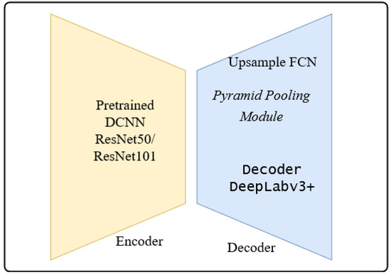 In our experiments, we have used the DeepLabv3+ (Figure 4) architecture in an encoder-decoder manner, using the ResNet50 and ResNet101 architectures as encoders.