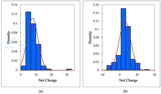 Graphical representation of Net Charge feature of the Gram-positive dataset. Histogram of (a) AMP class and (b) non-AMP class.
