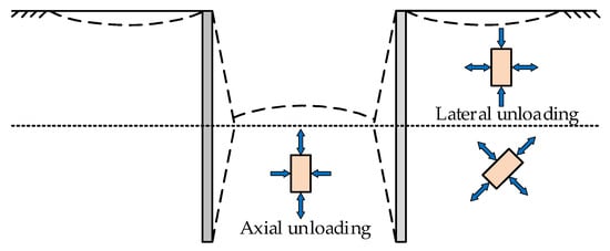 Urban issues such as land resource scarcity and traffic congestion resulting from rapid city expansion are a significant threat to the sustainable development of coastal cities. The development of high-quality underground spaces is an effective way to address this issue [1]. Due to the complex engineering properties of soil, foundation pit excavation in coastal areas has resulted in fatal accidents [2]. Foundation excavations conducted without adequate safeguards also result in significant deformation or even structural damage to adjacent underground structures, including shield tunnels and metro stations [3,4,5]. When evaluating the safety and environmental impact of foundation engineering, the mechanical properties and parameters of soil are typically determined through loading tests, which include conventional triaxial and pressure-meter tests [6,7]. The excavation of foundation pits is a common unloading problem, and extensive research demonstrates that the mechanical properties of soil are inextricably linked to the stress path [8,9]. As a result, the difference in soil properties between loading and unloading stress paths may result in unpredictable calculation errors in foundation engineering. It is thus critical to have a thorough understanding of the stress and deformation characteristics of coastal soil during unloading.