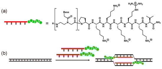 - Aiba, Y.; Honda, Y.; Komiyama, M. Promotion of double-duplex invasion of peptide nucleic acids through conjugation with nuclear localization signal peptide. Chem. Eur. J. 2015, 21, 4021–4026. [Google Scholar] [CrossRef] [PubMed]