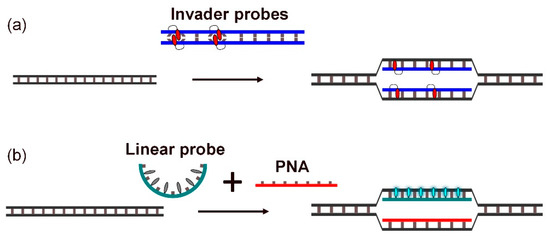 - Asanuma, H.; Niwa, R.; Akahane, M.; Murayama, K.; Kashida, H.; Kamiya, Y. Strand-invading linear probe combined with unmodified PNA. Bioorg. Med. Chem. 2016, 24, 4129–4137. [Google Scholar] [CrossRef]