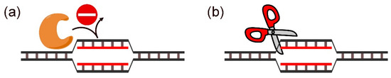 - Qi, L.S.; Larson, M.H.; Gilbert, L.A.; Doudna, J.A.; Weissman, J.S.; Arkin, A.P.; Lim, W.A. Repurposing CRISPR as an RNA-guided platform for sequence-specific control of gene expression. Cell 2013, 152, 1173–1183. [Google Scholar] [CrossRef] [PubMed]