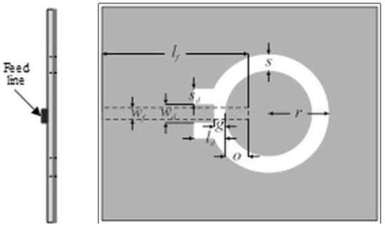 Geometry of the ring slot antenna with a microstrip feed (dashed line) [67].