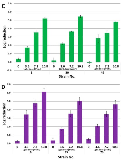 - Awad, M.M.; Tovmasyan, A.; Craik, J.D.; Batinic-Haberle, I.; Benov, L.T. Important cellular targets for antimicrobial photodynamic therapy. Appl. Microbiol. Biotechnol. 2016, 100, 7679–7688. [Google Scholar] [CrossRef]