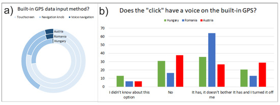 In Figure 4a, the input methods—touchscreen, navigation knob, or voice—are analyzed. The Romanian drivers are mostly touchscreen users. In Figure 3b, the question was whether the system could respond to voice commands—not whether it could only work with voice. The last question was about how the driver reacts to sound when the user accepts/selects something. Based on this, it can be said that the Austrians use this feature the least.