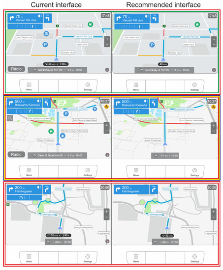 - Vörös, F.; Tompos, Z.; Kovács, B. Examination of car navigation systems and UX designs—Suggestion for a new interface. Proc. ICA 2019, 2, 1–7. [Google Scholar] [CrossRef]