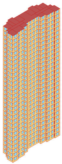 Following that, specific common attributes are assumed to finish the model’s development, and their values are provided in Table 2. After the attributes are specified, a complete 3D building model (Figure 4) can be created, which is the default model used in this study.