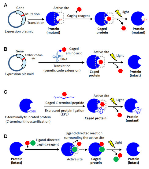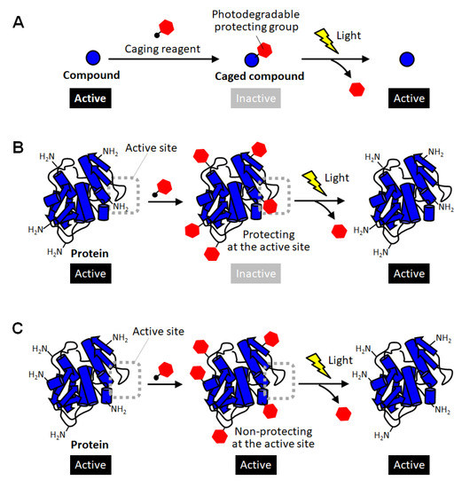 Chicago/Turabian StyleYamaguchi, Satoshi. 2022. "Recent Advances in Protein Caging Tools for Protein Photoactivation" Applied Sciences 12, no. 8: 3750. https://doi.org/10.3390/app12083750
