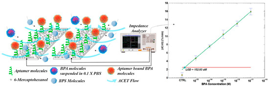 Ren et al. [62] built up a sensing device composed of a Liquid Crystal (LC) coated with a BPA aptamer and then used polarized light microscopy to monitor the changes in the LC structure after the binding of BPA to the aptamer.