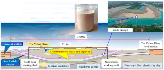 In recent years, the progressive utilization of underground space has gradually become a new trend in energy conservation worldwide. Due to urban development, many underwater tunnels crossing rivers, lakes, and seas have been constructed in major cities. The slurry shield method has become the first choice for underwater tunnel construction due to its high efficiency and security [,]. During slurry shield tunnel construction, the sludge-water separation equipment separates the large mud particles but not the small particles promptly, resulting in increased mud gravity and viscosity. As part of the waste mud meets the construction requirements, a proper amount of water or additive is added to produce a lot of waste mud with high specific gravity and high viscosity. The waste mud contains much cellulose, sodium carbonate, bentonite, and other auxiliary additives and chemical substances, which could cause environmental pollution and land occupation [].