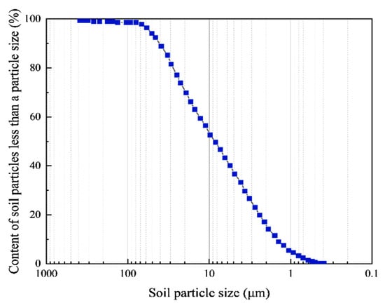 The mud used in this test is from the bottom of the sedimentation tank at the construction site. The obtained mud is yellow and odorless with high clay content, high moisture content, and difficulty in dehydration. Table 1 shows the basic properties of the mud. The particle size distribution curve is shown in Figure 2. The mud particles are composed of clay, silt, and fine sand, where the clay content is about 37%.