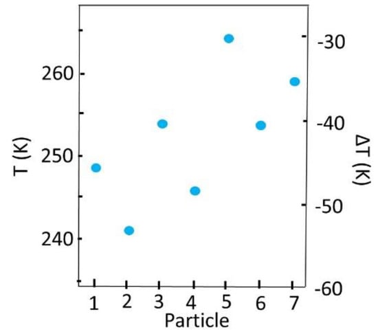 Figure 11 shows the temperatures of 13 particles trapped using laser light at