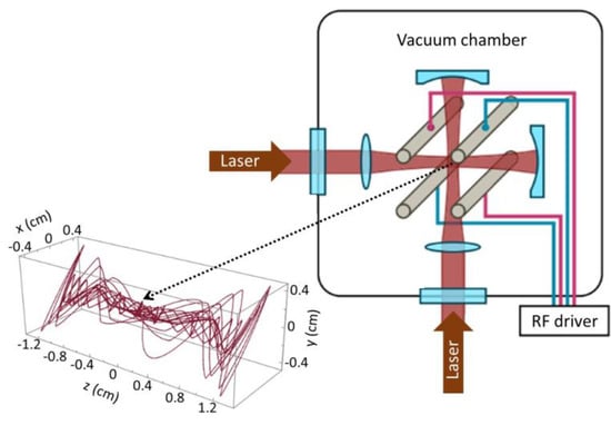 Figure 14). The secular motion takes place along the smooth trajectory, which converge to the center of the Paul trap. The interaction between the charged nanocrystals and radio-frequency field results in small oscillations about the secular path. The numerical simulations presented in [
