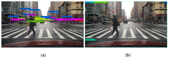 - Yu, F.; Chen, H.; Wang, X.; Xian, W.; Chen, Y.; Liu, F.; Madhavan, V.; Darrell, T. BDD100K: A Diverse Driving Dataset for Heterogeneous Multitask Learning. In Proceedings of the IEEE Conference on Computer Vision and Pattern Recognition (CVPR), Seattle, WA, USA, 14–19 June 2020. [Google Scholar]