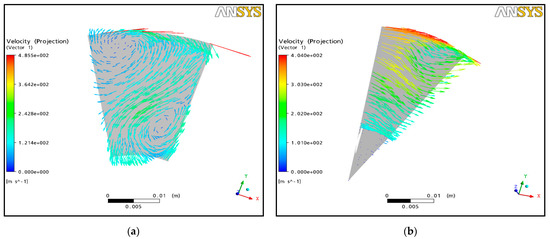 Tangential relative velocity field: (a) tangential relative velocity field in rotor inlet; (b) tangential relative velocity field in rotor outlet.