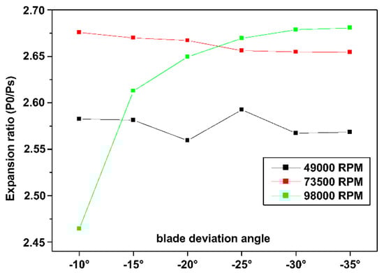 Expansion ratio for different deviation blade angles.