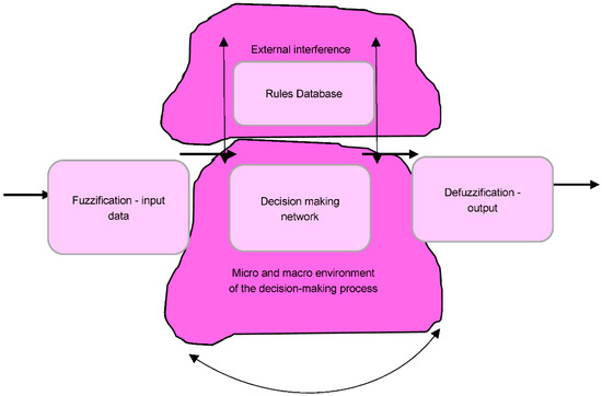 The third group of decision-making situations consists of fuzzy models, where problems are shown as dependent on links and relations between different-level decision makers [20,21]. The mentioned relations include cooperation, coordination, or competition. Such relations differ in terms of information transmitted between the system’s constituents, and with respect to set boundaries of effects produced by particular decision criteria. Cooperation necessitates sharing information, while competition is associated with information non-linearity and disproportions [22,23]. The shared characteristic for both forms of relations is non-linearity and non-continuity of decision processes (Figure 3).