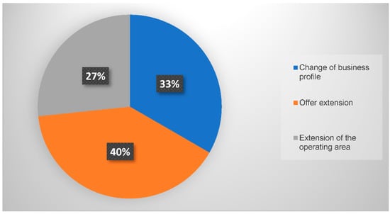 Decision problems in the companies submitted to our study also pertained to such situations as a change in the profile of business, a change or broadening of the scope and area of business activities. The number of such situations was quite evenly distributed among the types of companies. Details can be seen in Figure 10.