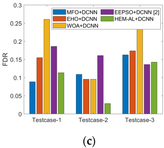 Performance of the developed scheme over extant schemes for “(a) FPR (b) FNR (c) FDR”.