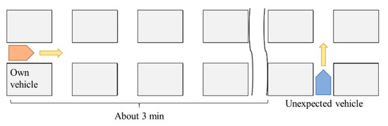 - The variable denotes the time at which the unexpected vehicle appears, plus 30 sec. The reason for selecting an interval of 30 s is based on previous research [24]; about 10 to 15 seconds must elapse before taking a reading of the maximum blood pressure, after drivers are surprised at the appearance of the unexpected vehicle.